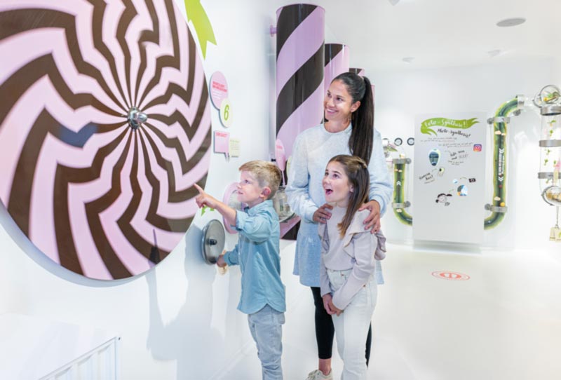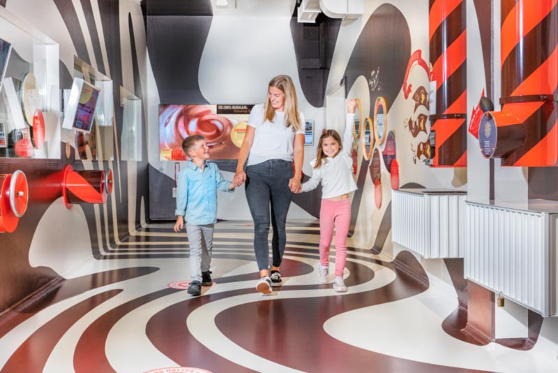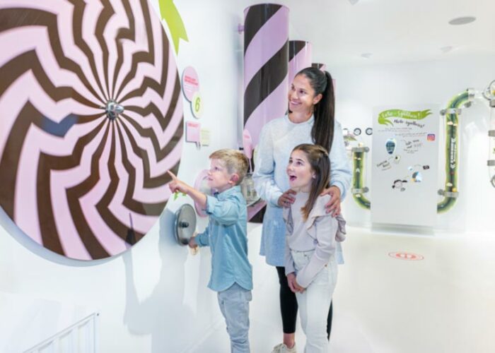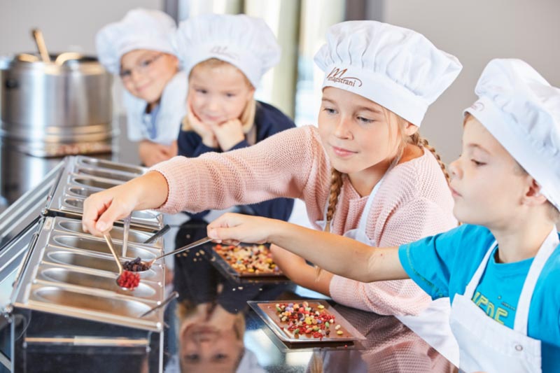 Verschiedene Schoggi-Gießkurse, attraktive Events und der große Schoggi-Shop runden das süße Angebot der Erlebniswelt ab.